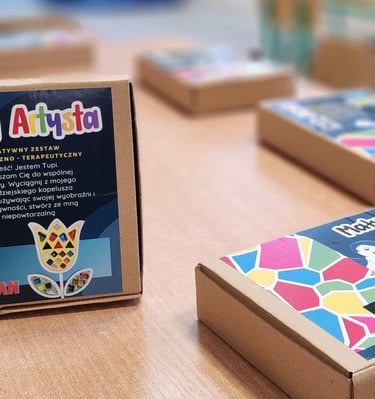 Tworzymy unikalną formę warsztato-terapii dla Dzieci oraz dorosłych, która łączy elementy sztuki z psychologią, pomagając wyrażać siebie oraz swoje emocje. Serie warsztatów w Pudełkach Małego Artysty trenują umiejętności ogólnorozwojowe oraz plastyczne Dzieci, mające na celu głównie stymulację sensoryczną.