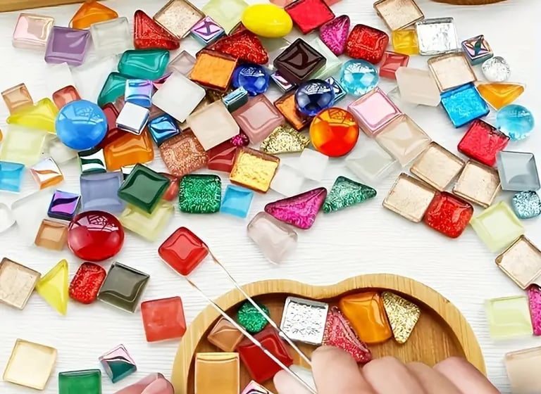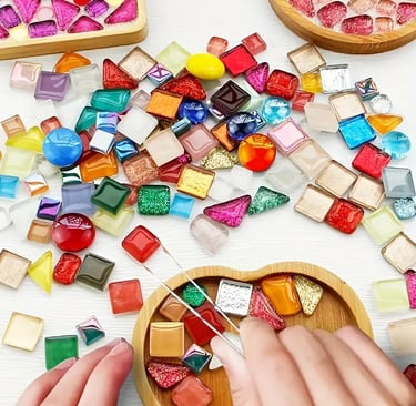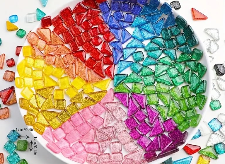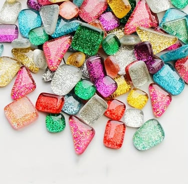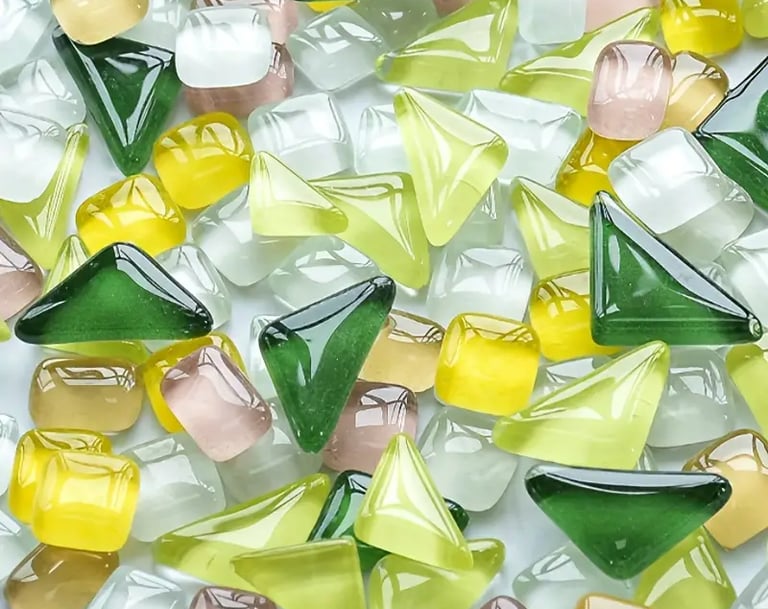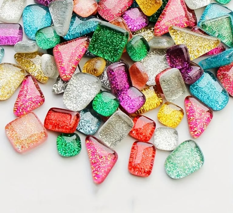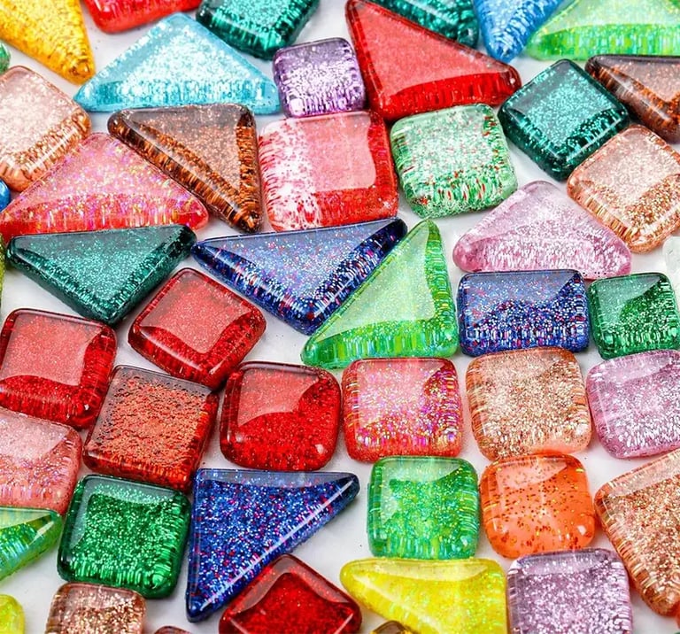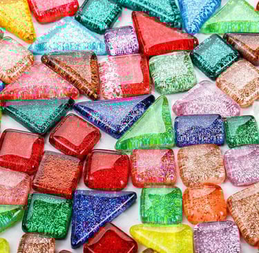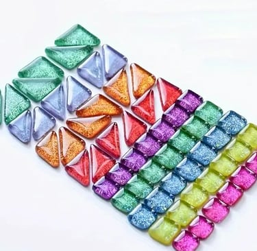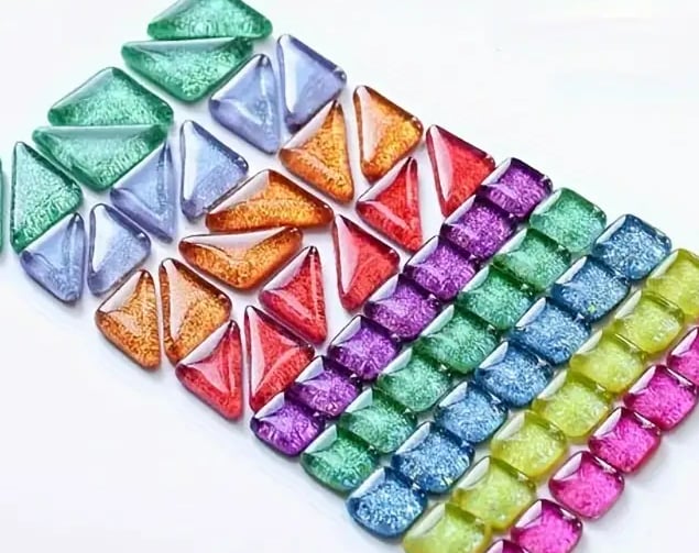 Nasze niepowtarzalne szkiełka MOZAIKOWE do wypełniania naszych kształtów są wykonane w 100% najwyższej jakości składników oraz barwników, są w 100% BEZPIECZNE w użyciu, każde szkiełko jest indywidualnie oszlifowane, niezawiera żadnych ostrych krawędzi które mogłyby stwarzać ryzyko skaleczenia się, są także odpowiednio wygładzone i przygotowane w sposób który umożliwia bardzo łatwą zabawę dla dzieci oraz dorosłych. Stwarzają niesamowity efekt wizualny, który jest uwielbiany przez wszystkich którzy spróbują tej metody DEKOROWANIA! Są bardzo błyszczące, szklące, w obłędnie barwnych kolorach, niektóre dodatkowo są pokryte brokatową powłoką co dodatkowo dodaje im jeszcze większego uroku.
