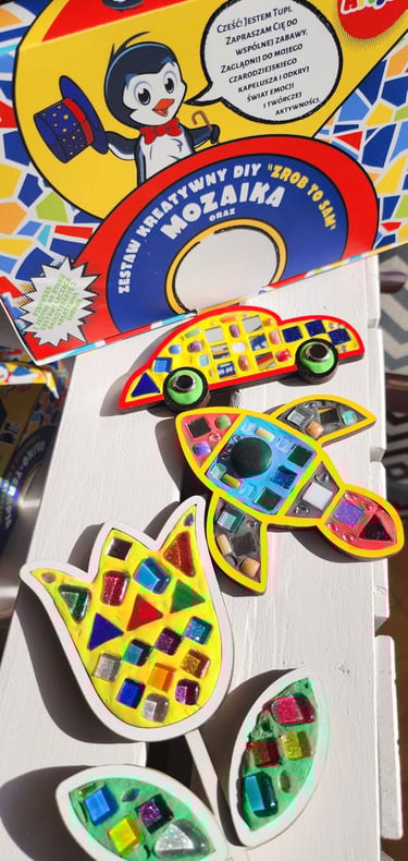 W połączeniu z naszymi kreatywnymi zestawami mozaikowymi, nawiązującymi tematycznie do wprowadzonej bajki, stanowi olbrzymie zaplecze edukacyjne i wsparcie emocjonalne, co czyni ją cennym narzędziem w pracy z dziećmi.